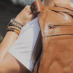 This Tan Leather jacket is made from 100% lambskin leather. This luxurious material is soft like a worn-in jacket, making putting it on or taking it off a breeze.
